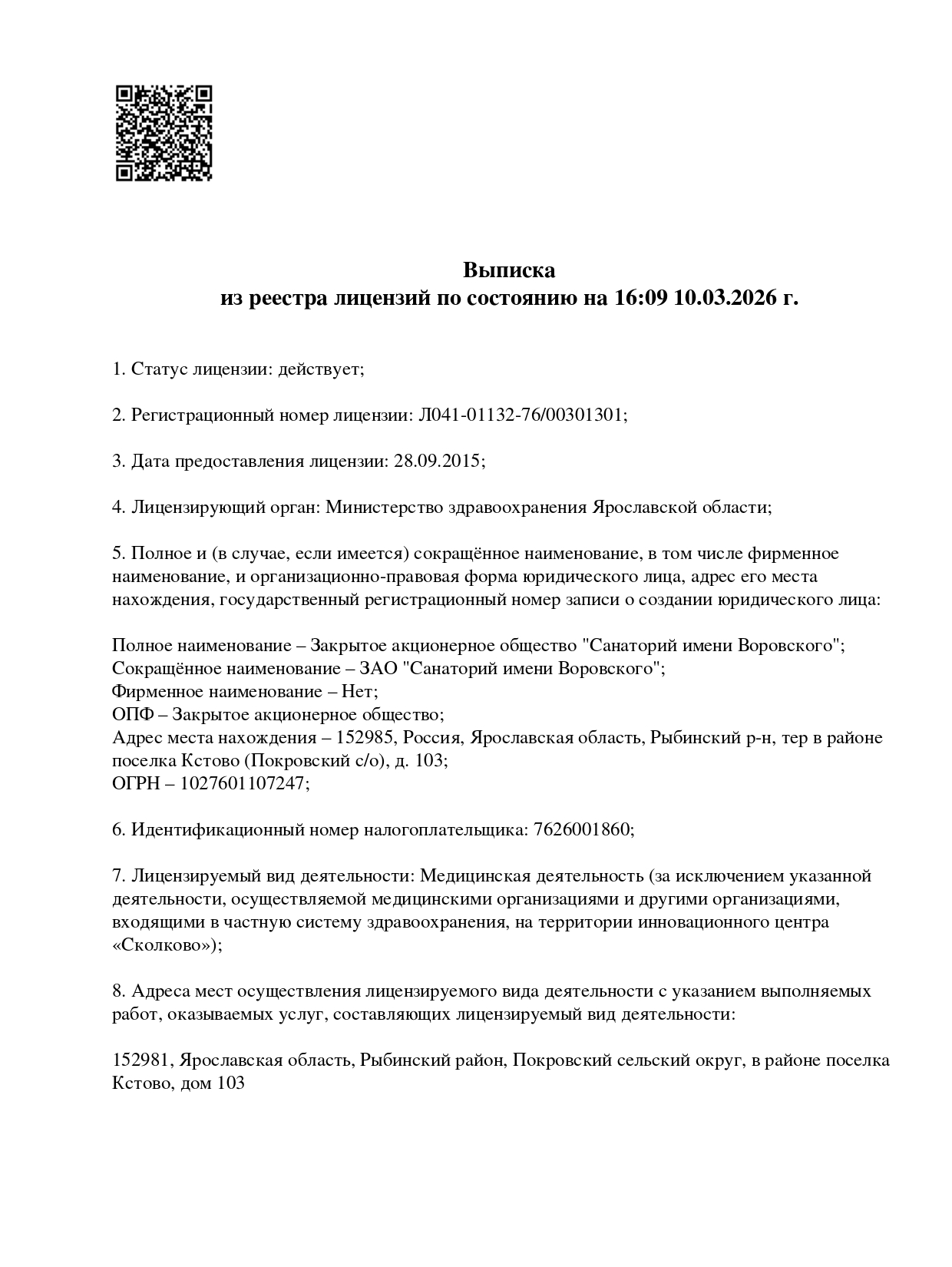 Выписка из реестра лицензий на медицинскую деятельность