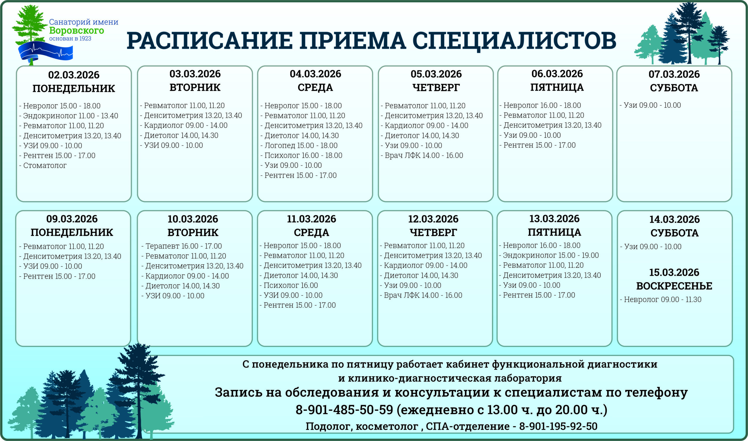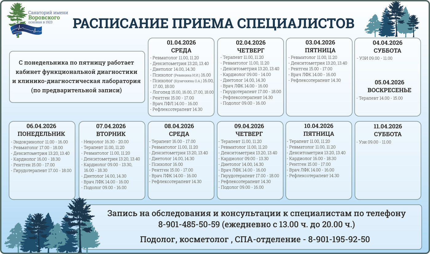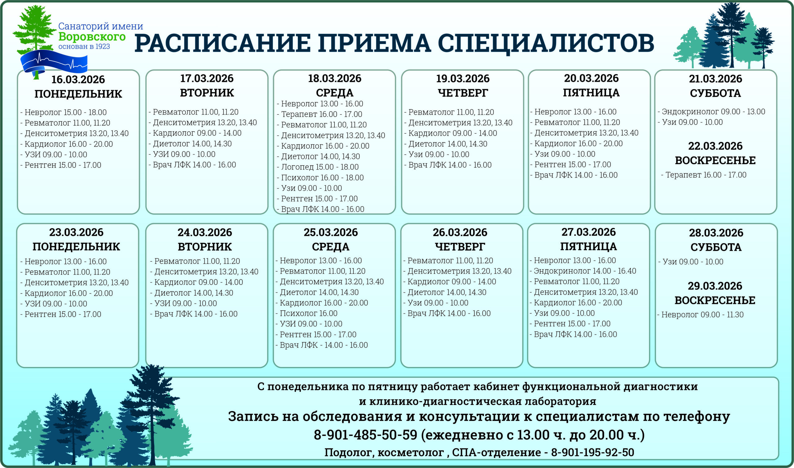 В Санатории имени Воровского работает современная Курортная поликлиника — ваш надежный партнер в сохранении и укреплении здоровья. Мы создали мультидисциплинарную команду высококлассных специалистов, чтобы вы могли получить комплексную врачебную помощь, не выезжая за пределы курорта.