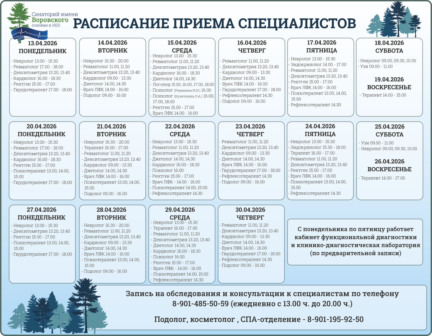 Для вас ведут консультативный прием врачи следующих специальностей: